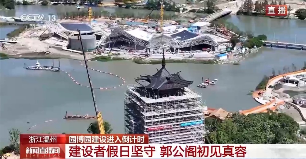 总台记者 韩栋:这儿是园博会主场馆园博园的施工现场,温州园博会是国家级园林博览会,主题为“诗画山海 同享绿色日子”。整个项目用地面积约230公顷,体量大、工期紧,为了能够顺畅交给,这个假日,有2000多名施行工程人员奋战在施工现场。