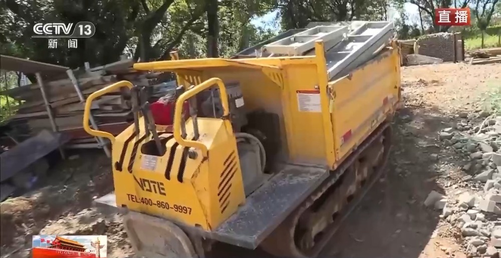 为进步施工功率,施工方引进了5辆形似坦克的山地“爬山虎”履带运送车,用于山地资料的运送。这台机器具有高达2000公斤的惊人载重才能,最重要的是无论是松软的泥地、45°以下的陡坡、台阶地、布满碎石的施工便道,仍是雨后湿滑的斜坡,它都能如履平地。
